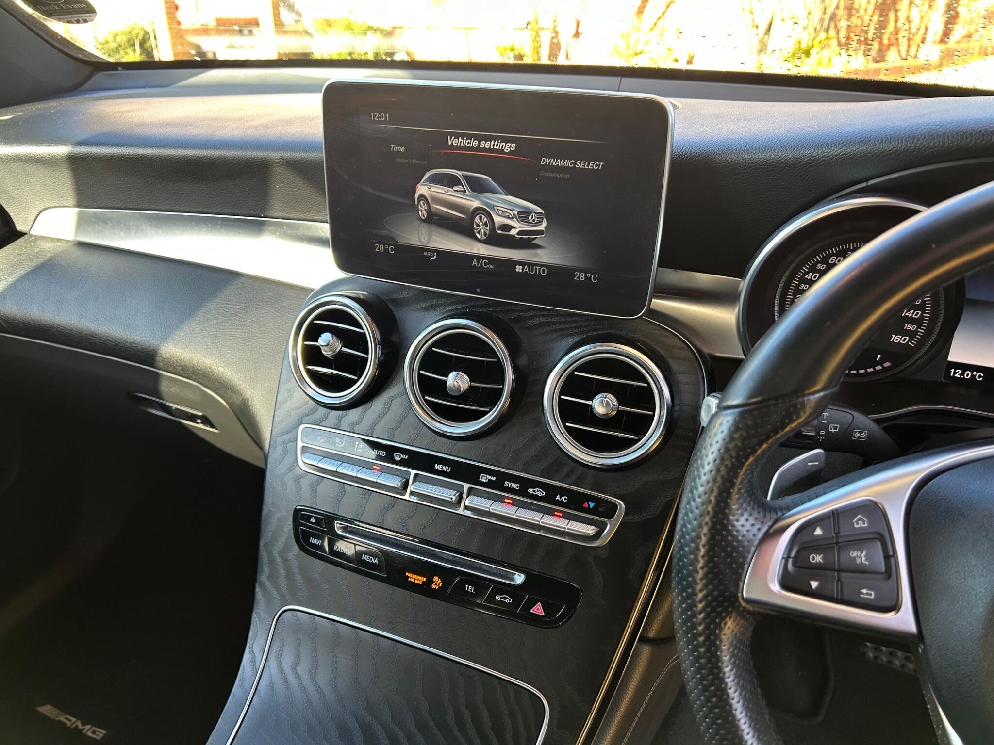 - Steering Wheel - 3-spoke Multi-function AMG in Black Leather with Flattened Bottom Section and Chrome Inserts and Perforated Leather in Grip Area